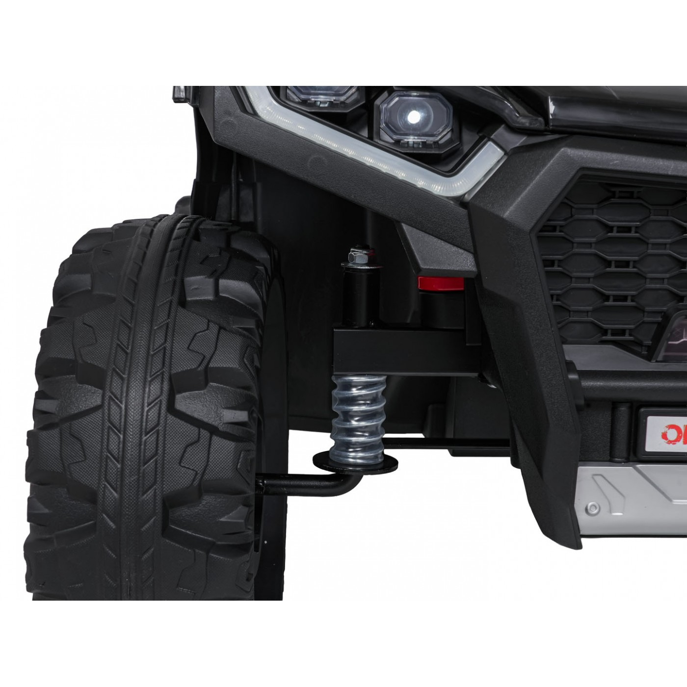 ATV-ul utilitar de culoare alba, este destinat copiilor intre 2 si 6 ani. Acesta are roti moi din cauciuc EVA, 4 motoare cu o putere totala de 180W, baterie de 12V 14Ah, tractiune 6x4, remorca si alte dotari.