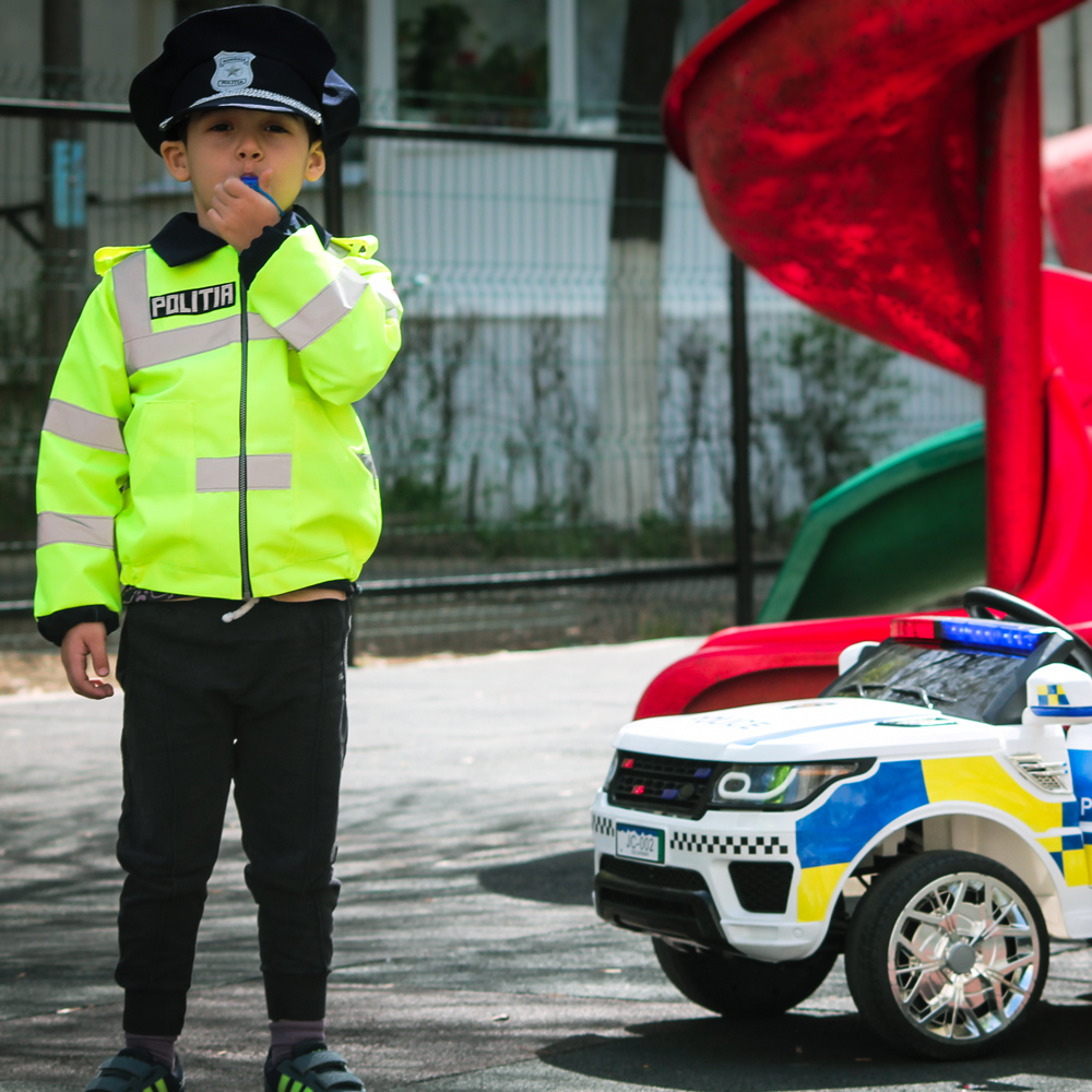 Atentie:  Costumul sugereaza anumite uniforme/meserii/personaje si poate fi utilizat doar pentru joaca fara a fi utilizat in spatiul public. Acesta nu copiaza grade militare si nu contine elemente omologate.