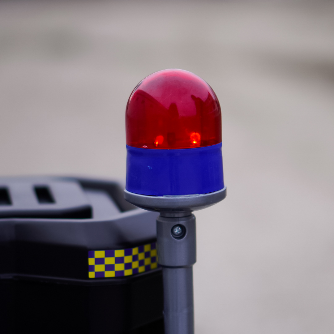 Girofarul activ, megafonul autentic, luminile LED și efectele sonore adaugă un plus de adrenalină, în timp ce amortizoarele și bateria 12V asigură plimbări line și distractive.