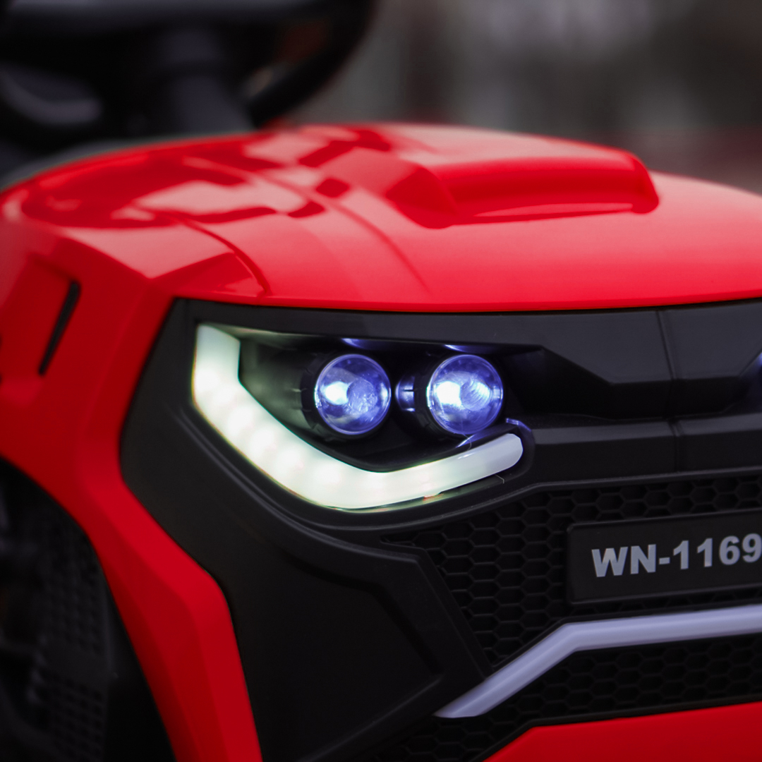 Tractorasul electric Kinderauto 1804 PREMIUM este echipat cu doua motoare electrice de 45W la 12V (putere totala 90W), oferind tractiune constanta si performanta optima pe diferite tipuri de suprafete. Alimentarea este asigurata de o baterie reincarcabila de 12V 10Ah, iar rotile moi din cauciuc EVA, impreuna cu sistemul de amortizare, contribuie la o rulare silentioasa si stabila. Controlul parental prin telecomanda, cele 3 niveluri de viteza, precum si functiile de pornire si oprire lenta asigura un nivel ridicat de siguranta, in timp ce dotarile precum remorca basculabila, sistemul audio MP3 si scaunul tapitat cu piele ecologica completeaza un pachet premium, destinat copiilor cu varste intre 36 si 96 de luni.
