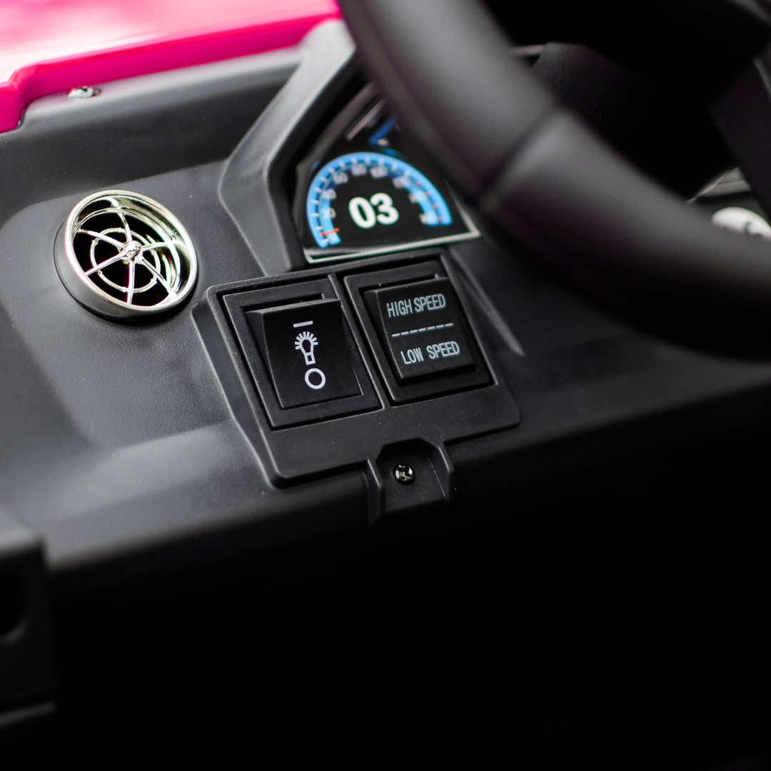 Cu tracțiune integrală 4x4, patru motoare puternice de 500W și o viteză maximă de 16 km/h, Buggy-ul oferă o experiență de condus autentică și sigură, perfect adaptată oricărui tip de teren. Bancheta dublă, tapițată cu piele ecologică, poate fi reglată și extinsă pentru până la 4 copii, iar un loc suplimentar pentru adult permite părintelui să asiste copilul în deplină siguranță.