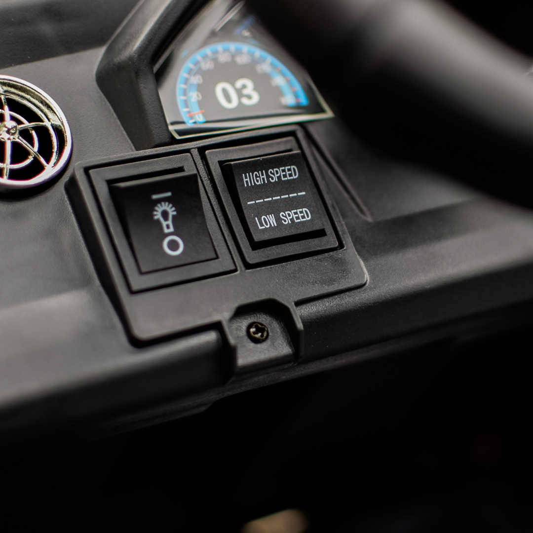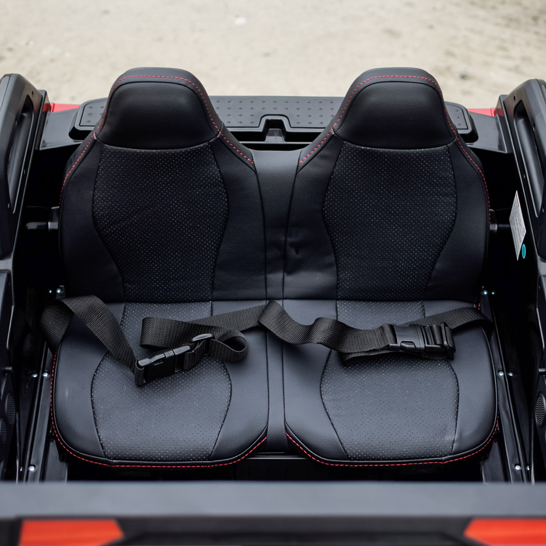 UTV-ul electric negru BJX1928/SX1928 este destinat copiilor intre 3 si 12 ani, are echipare premium ce consta in roti moi din cauciuc EVA, scaun tapitat cu piele ecologica si music player cu porturi pentru diferite conexiuni. Acesta are 4 motoare a cate 75W ce insumeaza o putere de 300W, tractiune 4x4 iar bancheta este reglabila si poate sustine pana la 4 copii. In plus exista si un loc extra ce se poate converti pentru un adult astfel incat sa puteti ghida masinuta si sa-l asistati pe cel mic indeaproape.