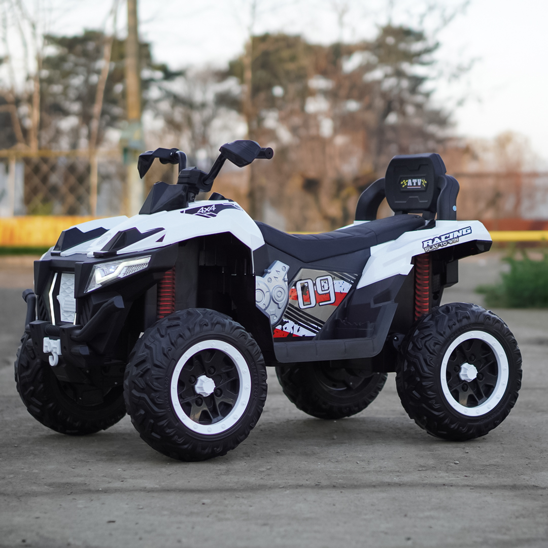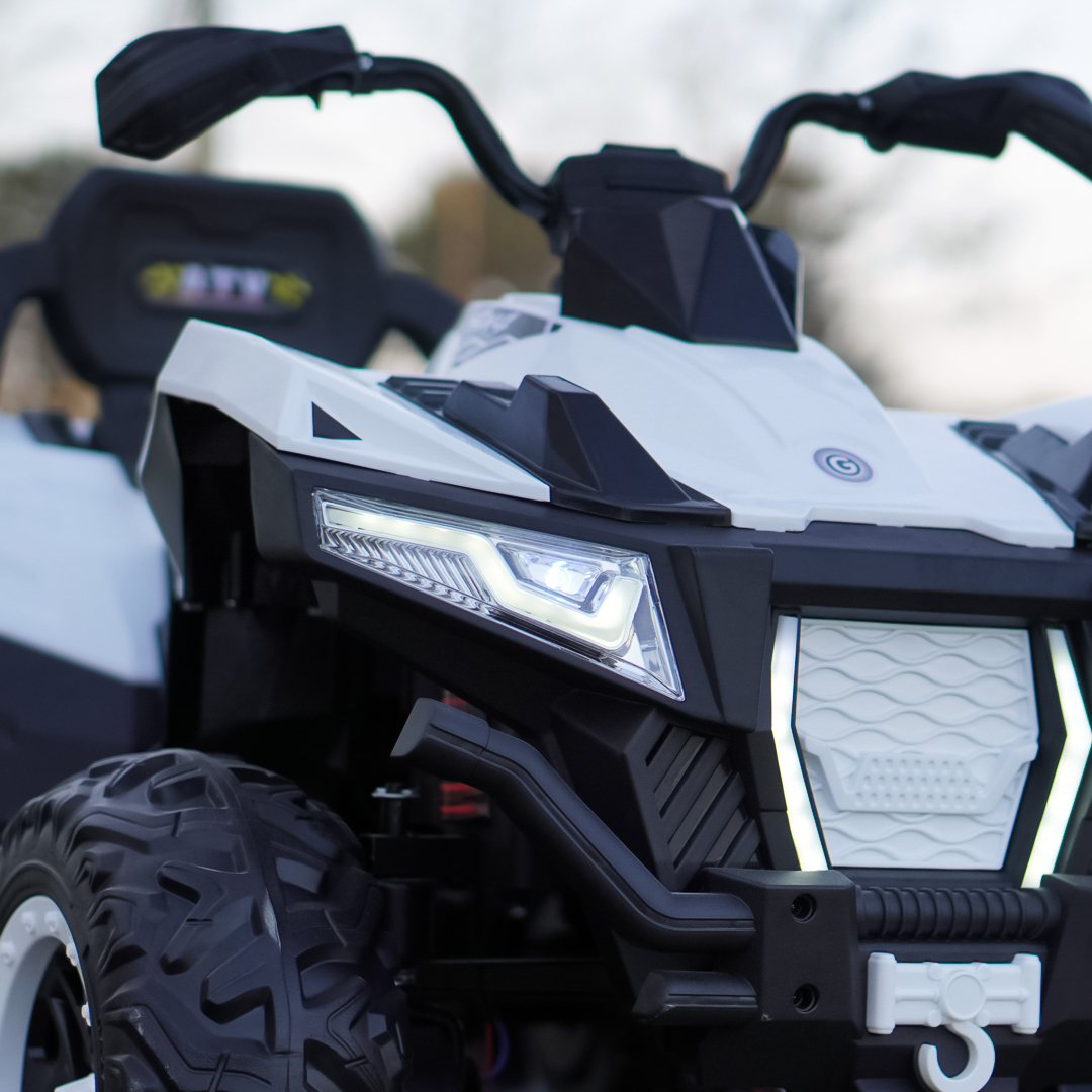 ATV-ul Kinderauto SuperOffroad V2, destinat pentru 2 copii, este echipat cu 4 motoare care însumează o putere totală de 180W și o baterie de 12V 12Ah. În plus, este dotat cu un Music player cu Bluetooth, slot USB și port Aux, oferind astfel distracție celui mic în timpul condusului ATV-ului, însoțit de muzica lui preferată. Pentru o siguranță suplimentară, poate fi utilizată o telecomandă pentru control parental, dar ATV-ul poate fi condus și separat de către copil.