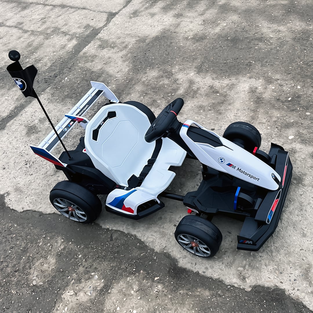 Kartul electric BMW Motosport este ideal pentru copiii intre 4 si 12 ani. Acesta este echipat cu roti din plastic cu banda de rulaj pentru confort sporit, functie de drift pentru distractie garantata si 2 motoare de 250W in partea din spate.  Viteza maxima este de 12km/h, acesta are si o functie pentru incepatori avand o viteza mai mica, pornire din buton, centura de siguranta.