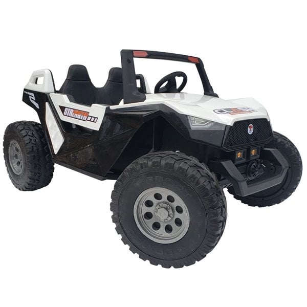 tracțiune integrală 4x4, patru motoare puternice de 500W și o viteză maximă de 16 km/h, Buggy-ul oferă o experiență de condus autentică și sigură, perfect adaptată oricărui tip de teren. Bancheta dublă, tapițată cu piele ecologică, poate fi reglată și extinsă pentru până la 4 copii, iar un loc suplimentar pentru adult permite părintelui să asiste copilul în deplină siguranță.