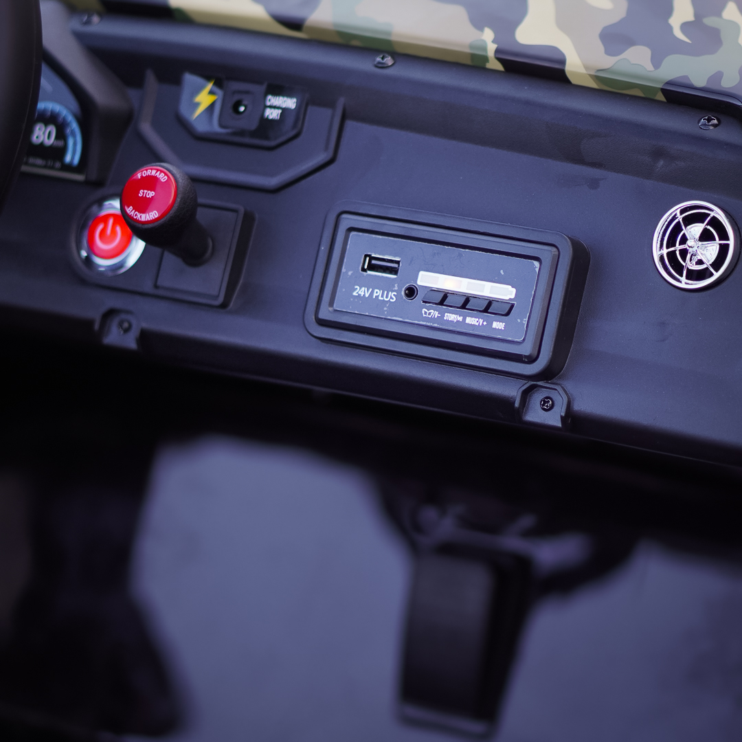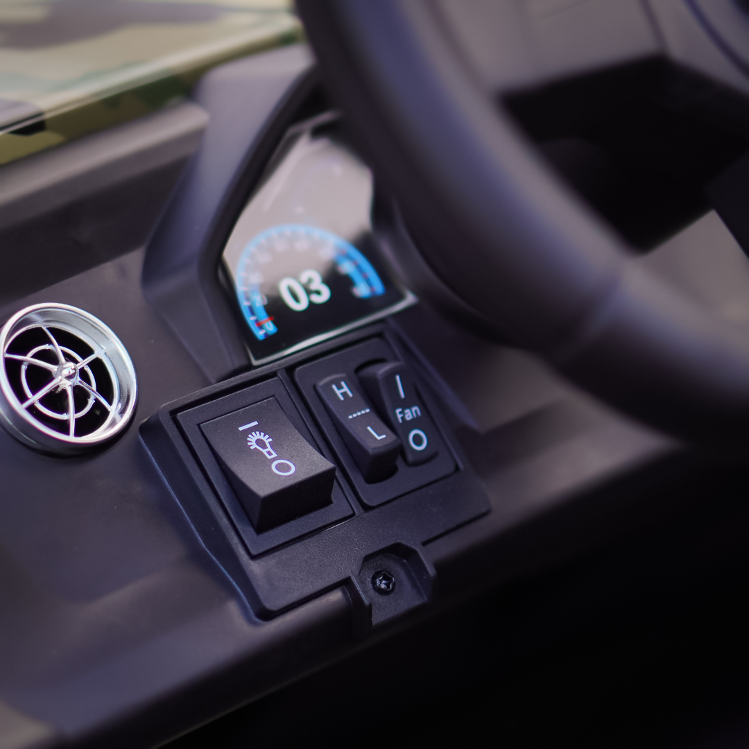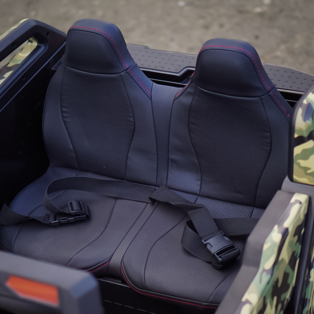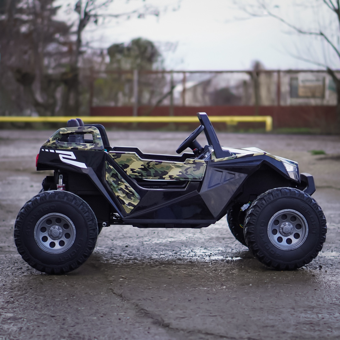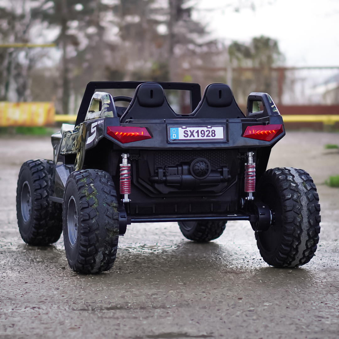 UTV-ul electric XXL Buggy este destinat copiilor intre 3 si 12 ani, are echipare premium ce consta in roti moi din cauciuc EVA, scaun tapitat cu piele ecologica si music player cu porturi pentru diferite conexiuni, bancheta este reglabila si poate sustine pana la 4 copii. In plus exista si un loc extra ce se poate converti pentru un adult astfel incat sa puteti ghida masinuta si sa-l asistati pe cel mic indeaproape.